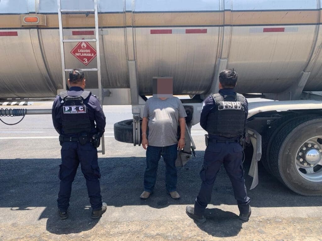 Durante la inspección, el personal de la Policía Estatal de Caminos detectó un tractocamión Kenworth modelo 2020, acoplado a un remolque Trayfer 2019 y un semirremolque tipo tanque, con razón social de una empresa transportista. El conductor, identificado como Benigno “N”, de 54 años de edad y originario de Puebla, no presentó documentación fiscal ni de importación que acreditara la legalidad del combustible transportado.