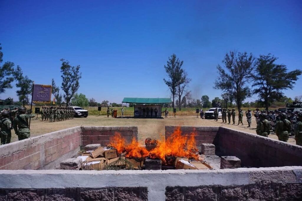 Sarabia, Gto. – En un operativo conjunto, autoridades federales llevaron a cabo la incineración de una importante cantidad de droga decomisada en diversos operativos realizados en los 46 municipios del estado de Guanajuato.