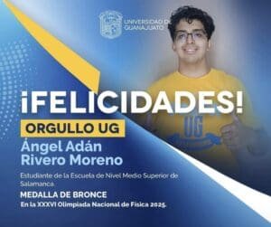 “La comunidad de la ENMS Salamanca felicita a ángel Adán Rivero Moreno, por su Medalla de Bronce en la Olimpiada XXXVI Nacional de Física 2025”.