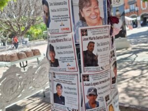 Frente al panorama, familiares de personas no localizadas distribuyeron fichas recientes de búsqueda en las inmediaciones del Jardín Constitución.