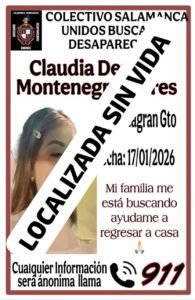 Salamanca, Gto. – Claudia Denisse Montenegro desapareció el 17 de enero de 2026, luego de casi dos meses de búsqueda el colectivo Salamanca Unidos Buscando Desaparecidos confirmó su localización entre los 8 cuerpos rescatados de un pozo en las cercanías de Mexicanos, en el municipio de Villagrán.