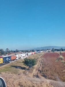 El bloqueo carretero en el tramo federal 45 continúa, los agricultores permanecen a pie de lucha; sin un acuerdo considerado justo, cientos de unidades han quedado encapsuladas: sigue el bloqueo.