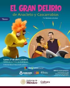 Posteriormente, se mostrará la historia de “El gran delirio de Anacleto y Cascarrabias”, obra teatral por parte de Bufones a la Mar, la cual se realizará el 27 de abril en punto de las 10:00 horas.