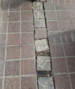 Salamanca, Gto. – Dentro del corazón salmantino, sobre la calle Benito Juárez, a unos metros del Santuario Diocesano del Señor del Hospital, el suelo brota los adoquines. La escena describe una arteria vial en mal estado.