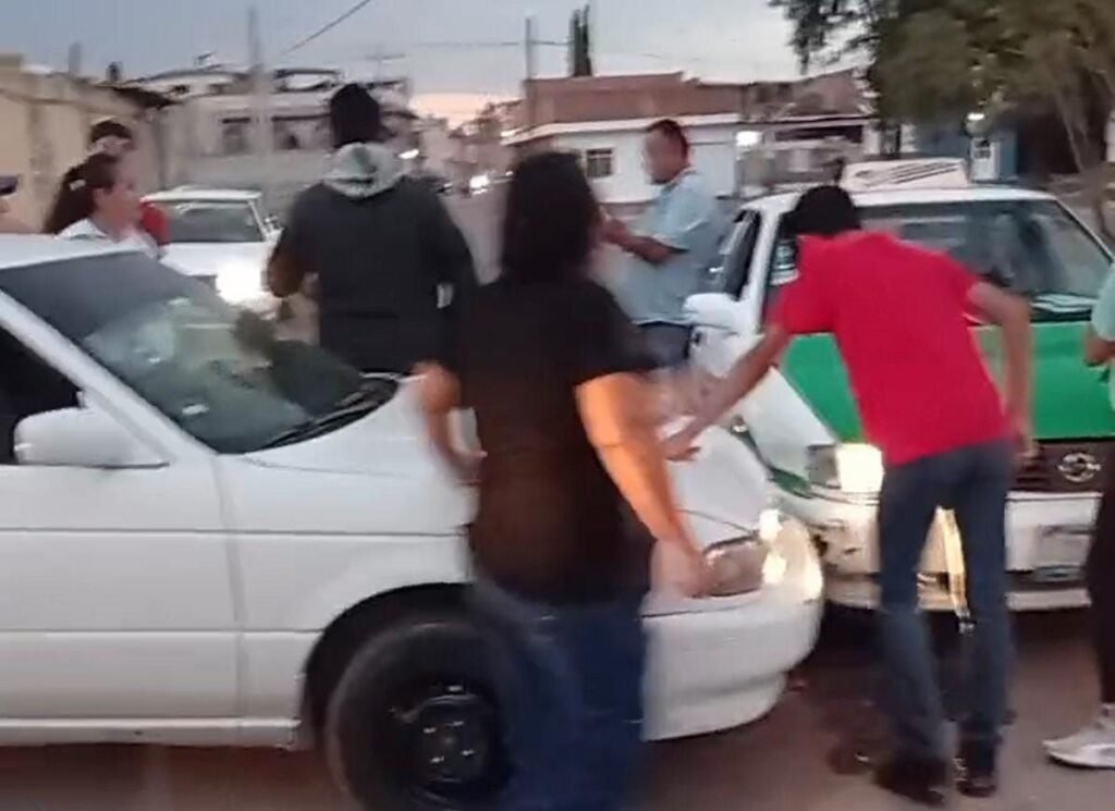 Los testigos y algunos otros vecinos de inmediato dieron arribo a la zona, ya que el conductor del taxi presentó una actitud agresiva contra la femina que conducía el otro vehículo.