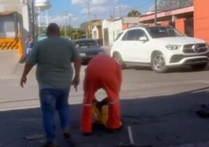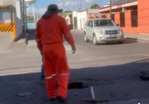 Alex refiere que no cobra ni un solo peso a los vecinos de la cercanías, tampoco se pone a pedir propina, solamente tapa baches por amor a su pueblo.