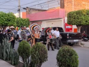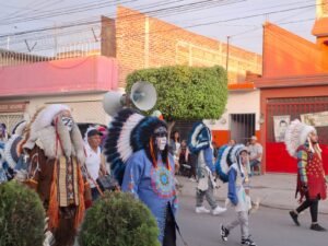 También se dirigieron a la Parroquia de Nuestra Señora de Guadalupe, frente al Jardín Revolución, para continuar el trayecto hacia el lugar de ensayo.