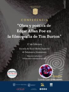 Con la participación de Rogelio Castro Rocha, Dr. en Humanidades y Literatura y de Lizeth García Ramírez presentarán, respectivamente: “Presencia de lo sobrenatural y la infancia en el cine de Guillermo del Toro” y “Obra y poética de Edgar Allan Poe en la Filmografía de Tim Burton”.