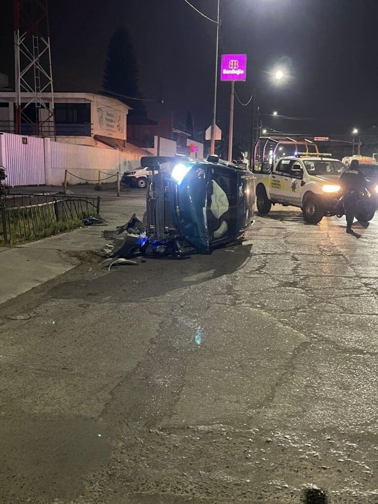Según testigos, el conductor de un automóvil compacto tipo Chevrolet  perdió el control luego de impactarse contra un vehículo Nissan Sentra, lo que provocó que su unidad terminara volcada sobre la cinta asfáltica.