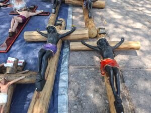 Salamanca, Gto. – Oscar Del Río, perteneciente a la comunidad de San Andrés Cuexcontitlán, de la demarcación de Toluca, llegó al municipio guanajuatense para ofrecer artesanías del Cristo Negro en esta Semana Santa y sumarse a la grata tradición.