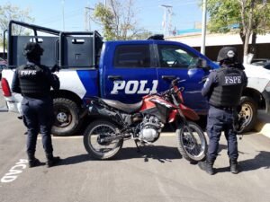 Valle de Santiago, Gto., 09 de abril de 2026.- La Secretaría de Seguridad y Paz, a través de las Fuerzas de Seguridad Pública del Estado (FSPE), detuvo a dos personas en posesión de armas de fuego, equipo de inhibición de señal y una motocicleta con reporte de robo vigente en la comunidad Magdalena de Araceo.