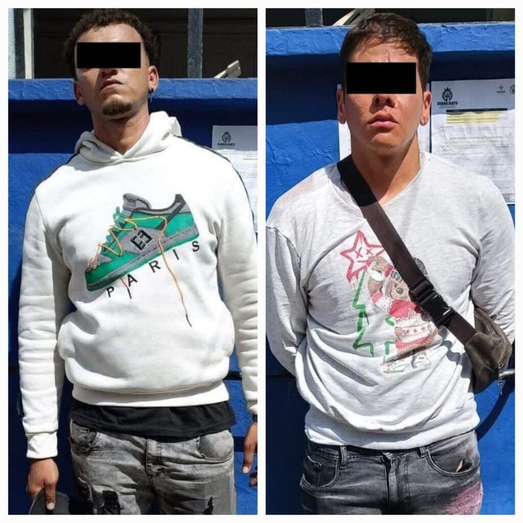 Guanajuato, Gto. – Elementos de la Policía Municipal detuvieron a dos hombres de nacionalidad colombiana, luego de ser señalados por agredir verbalmente a mujeres comerciantes en el mercado de Gavira, en la capital del estado.