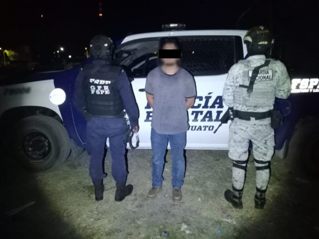 La detención se realizó durante un patrullaje preventivo en la colonia Plan de Guanajuato, en el que participaban FSPE, Guardia Nacional y Policía Municipal.