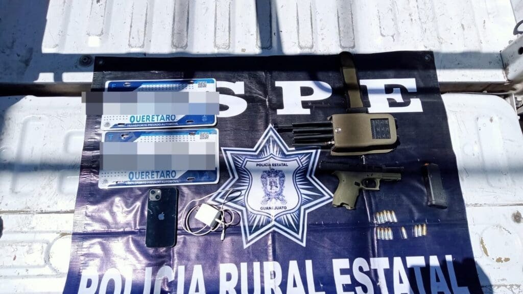 Tras verificar el número de serie se confirmó que desde el 28 de febrero de 2025 el vehículo tenía reporte de robo en Celaya. Fue detenido el conductor, identificado como Esteban “N”, de 29 años de edad y domicilio en la colonia Residencial Tecnológico. Las autoridades aseguraron el vehículo, un arma corta con cargador, un inhibidor de señal negro con ocho antenas y un juego de placas.