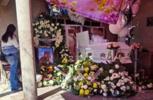 En un ambiente de profundo dolor y conmoción, los familiares de las víctimas de la masacre ocurrida en la comunidad Loma de Flores, en Salamanca, realizan los funerales de sus seres queridos. Las veladoras, las flores y las imágenes de los difuntos llenan el lugar, creando un ambiente de dolor y reflexión.