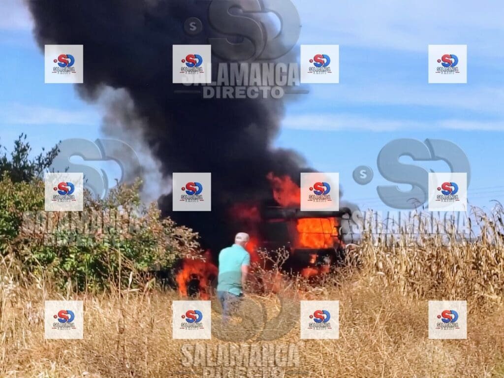 Salamanca, Gto.- Una falla mecánica presuntamente originada por un corto circuito provocó el incendio de una trilladora durante labores de cosecha en la comunidad de Cárdenas, al norte del municipio de Salamanca. Por fortuna, no se registraron personas lesionadas, solo daños materiales.