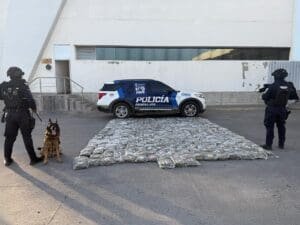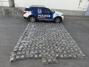 En el lugar, el oficial canino Mori marcó positivo sobre dos tarimas, al revisar su contenido, se localizaron 27 paquetes sellados al vacío que contenían presuntamente marihuana.
