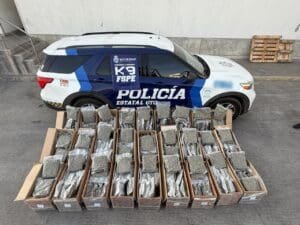 Guanajuato, Gto., a 17 de diciembre de 2025.- Personal de las Fuerzas de Seguridad Pública del Estado (FSPE) y la Unidad Canina K9 lograron frustrar el envío de un cargamento de droga que pretendía ser trasladado desde Guadalajara con destino a los estados de San Luis Potosí y Querétaro.