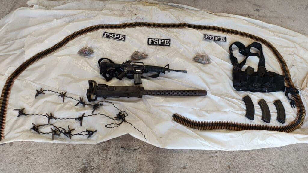 Un fuerte golpe al crimen organizado se llevó a cabo en la comunidad San Vicente de Flores, Salamanca, donde fuerzas de seguridad aseguraron una ametralladora Browning capaz de perforar blindajes, más de 500 cartuchos útiles, 11 vehículos y detuvieron a dos hombres armados tras un enfrentamiento.