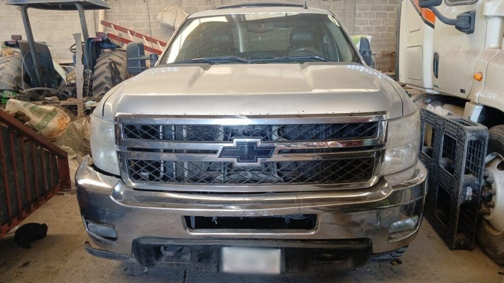 Posteriormente, durante un cateo, las autoridades aseguraron 11 vehículos, entre ellos camionetas, un tractocamión, maquinaria pesada y autos posiblemente relacionados con actividades ilícitas. El predio quedó bajo resguardo mientras continúan las investigaciones.