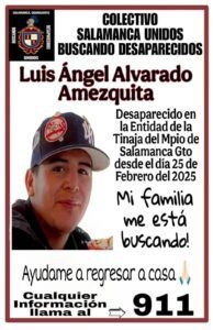 Salamanca, Gto. – A días de que se cumpla el primer aniversario de la desaparición de Luis Ángel Alvarado Amezquita, su familia mantiene la esperanza de que regrese con bien a casa. El joven fue sacado de su hogar por la fuerza por hombres armados la madrugada del 25 de febrero de 2025.