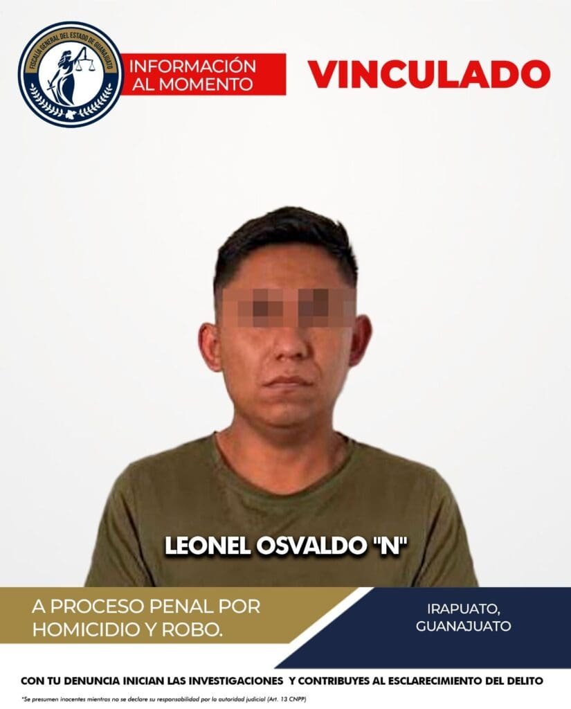 LA FISCALÍA DE GUANAJUATO CUMPLIMENTÓ ORDEN DEAPREHENSIÓN CONTRA “EL CHECO” POR HOMICIDIO Y ROBO ENIRAPUATO.