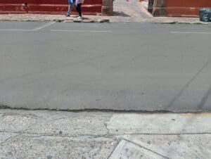 Ante la inestabilidad del suelo, cientos de transeúntes deben agudizar sus sentidos para circular en la presente calle; la banqueta representa, ahora, una posibilidad para cualquier accidente. Pese a que la calle forma una arteria importante del centro, existen coladeras a punto de colapsar, perforaciones en el paso peatonal y, actualmente, la reducción de banqueta por el desprendimiento de adoquín: hay riesgo.