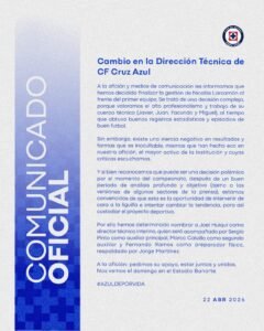 Este miércoles 22 de abril se dio el anuncio oficial sobre el despido de Nicolás larcamón de la dirección técnica del Cruz Azul.