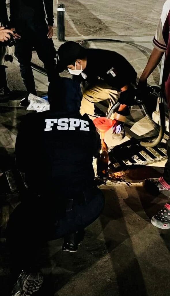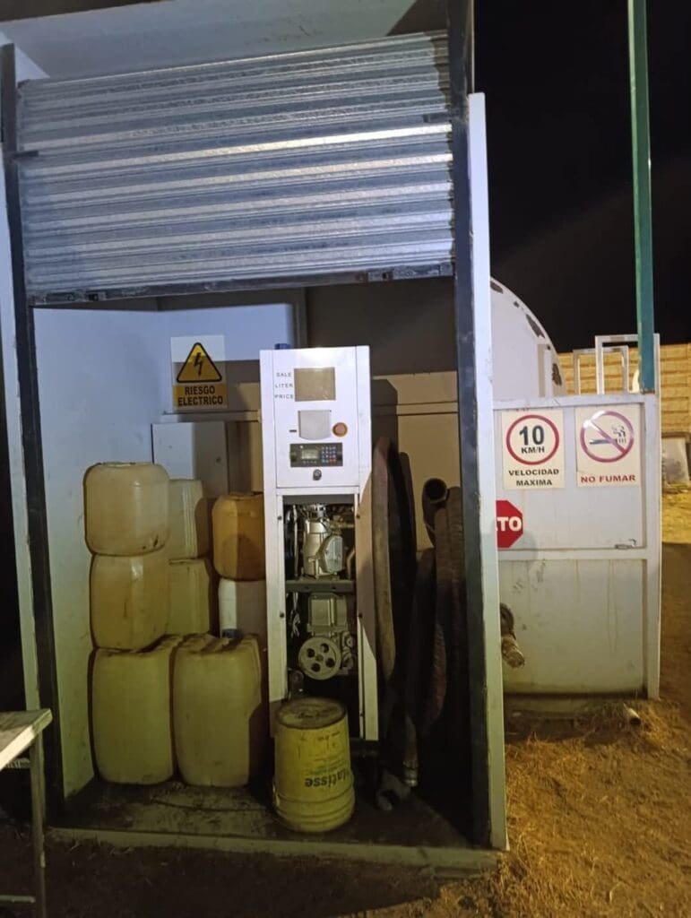 • Una máquina expendedora de gasolina, como las utilizadas en gasolineras, sin permisos legales; se extrajeron muestras representativas del combustible.