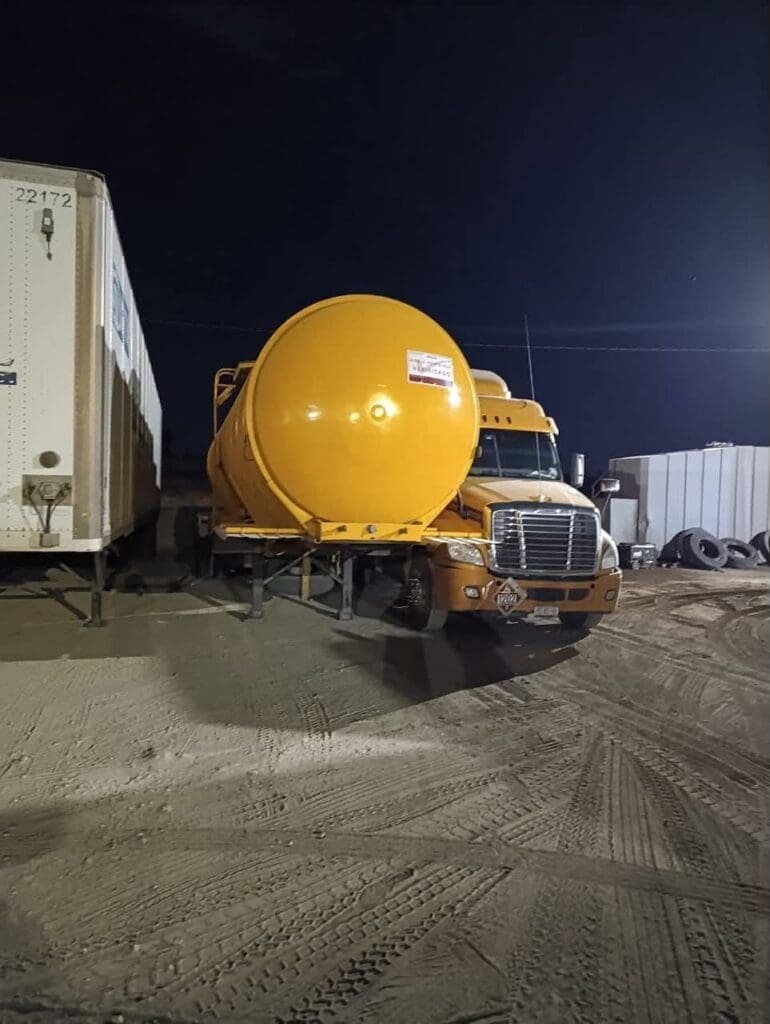 • Un tanque metálico blanco con capacidad de 30,000 litros, que contenía aproximadamente 23,700 litros de hidrocarburo.