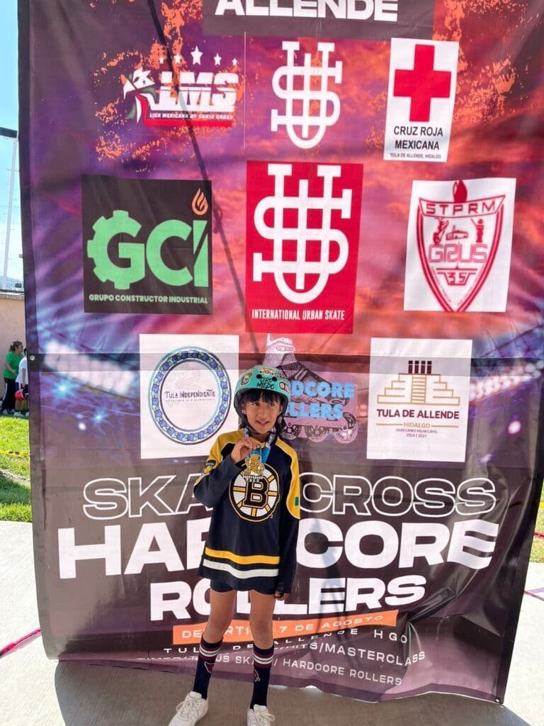 Salamanca, Gto.- La pequeña Romina Danae, de tan solo 8 años, regresó a Salamanca con un excelente resultado luego de participar en la Co Final del Skate Cross Hardcore Rollers, que se realizó en Tula de Allende durante el fin de semana. La joven patinadora se llevó el primer lugar en la categoría, demostrando su potencial y dedicación en este deporte extremo.