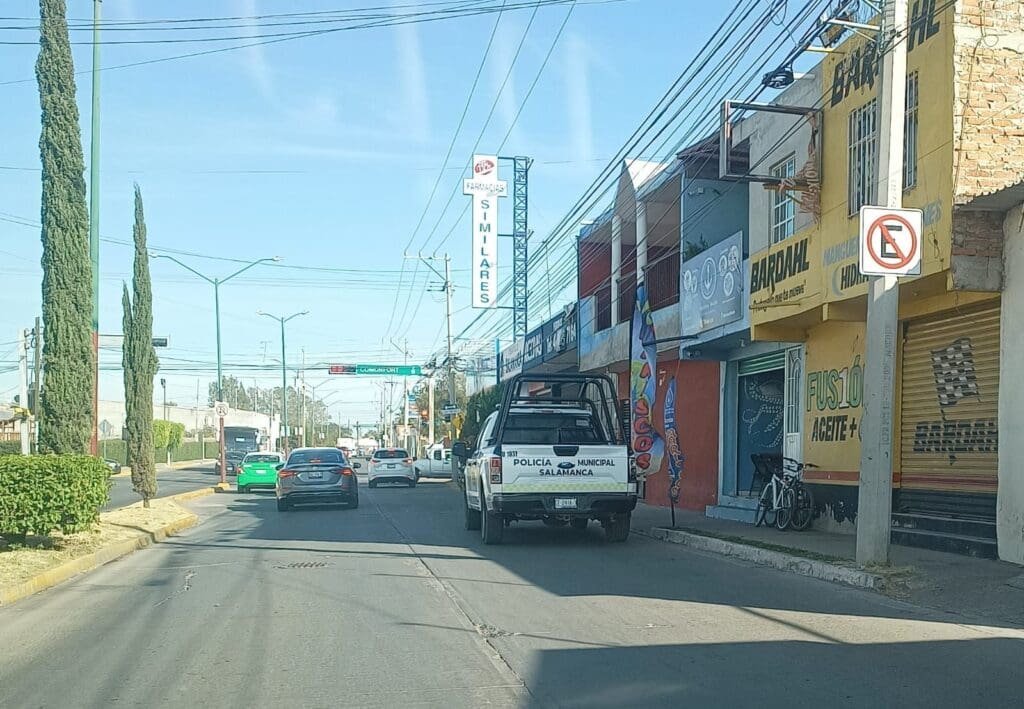 La avenida Salamanca, en el cruce con Comonfort, es una de las vialidades principales de la ciudad y cuenta con diversos negocios y farmacias, por lo que los peatones y automovilistas pidieron que las autoridades municipales den el ejemplo respetando el reglamento de tránsito.