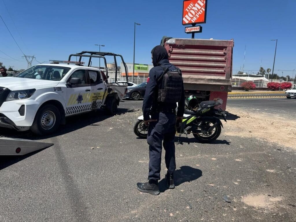 El accidente ocurrió a las 12:55 p.m., cuando la unidad policial, marcada con el número 1096, se dirigía a atender un reporte en la zona norte del municipio. Sin embargo, el conductor de la tolva hizo caso omiso a las señales de la patrulla, lo que provocó un violento impacto en el costado izquierdo del vehículo oficial.