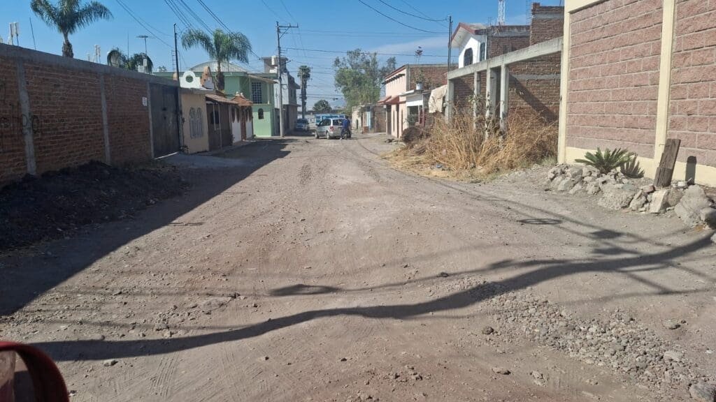 Ubicada ente la avenida Salamanca y el libramiento sur, esta colonia solo cuenta con una de sus 10 calles pavimentadas; debido a su localización, algunas de estas vialidades quedaron ubicadas sobre bajadas naturales de agua, principalmente de los escurrimientos que se generan en la parte alta de la zona, lo que produce un desgate de las superficies de rodamiento, por lo que sus vecinos piden al menos se compacten nuevamente con material pétreo de cara a una nueva temporada de lluvias, ya que el terreno irregular podría quedar en peores condiciones en algunos meses.