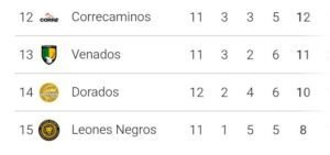 Tal cual en estos momentos la mayoría de equipos desde el octavo hasta el catorceavo lugar cuentan con aspiraciones para entrar a liguilla. Quienes prácticamente ya están eliminados son los Leones Negros de la UDG.
