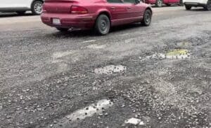 Salamanca, Gto.- Solo seis meses después de su encarpetamiento con asfalto, la calle Álvaro Obregón Norte entre Faja de Oro y Lázaro Cárdenas, ha comenzado a registrar un deterioro importante, debido a la carga vehicular y las recientes lluvias han surgido baches de tamaño considerable, lo que ha generado molestia entre quienes circulan por la zona.