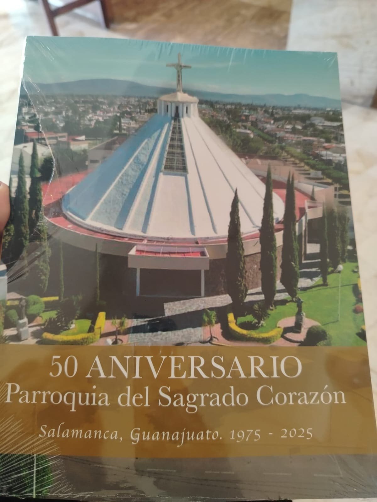 Salamanca, Gto.- La Parroquia del Sagrado Corazón en Salamanca celebró su 50 aniversario con la presentación del libro conmemorativo “50 Aniversario Parroquia del Sagrado Corazón”, escrito por la autora local Rosa María Rojas Navarrete. El evento contó con la presencia de sacerdotes, empresarios y feligreses que se reunieron para celebrar la publicación de esta obra que narra la historia de la parroquia.