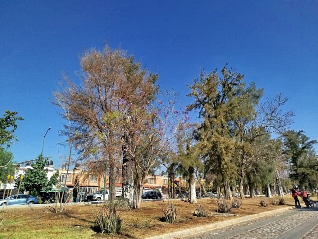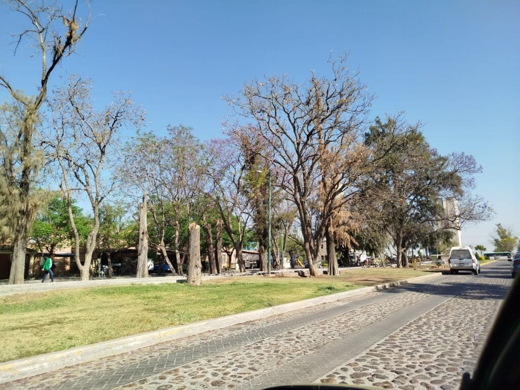Salamanca, Gto.- Después de que en septiembre del año pasado, un árbol cayó en la avenida principal del fraccionamiento Arboledas de Ciudad Bajío durante la última temporada de lluvias, los residentes están pidiendo a las autoridades que retiren los árboles secos que se encuentran en el camellón central, ya que estos representan un riesgo para los peatones, pues sus ramas o troncos pueden caer y lesionar a alguien.