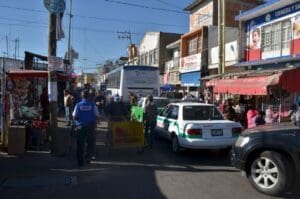 Salamanca, Gto.- Si bien los supuestos permisos de instalación de comercio semifijo contemplan una dimensión de tres por dos metros, estos no contemplan la invasión de calles o banquetas como se hace en la periferia del mercado Tomasa Esteves; situación que se ha ido permitiendo cada vez más por el gobierno de César Prieto ante el temor y falta de responsabilidad del cargo en hacer respetar los lineamientos en torno al orden comercial.
