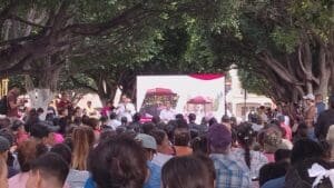 El pasado 27 de agosto, familias de la capital mundial del nopal se conglomeraron en el epicentro de su localidad para ser partícipes de la exposición de ficha técnica de renovación de este espacio de recreación familiar. De manera rudimentaria y con manos levantadas se dio elección de la arquitectura del kiosco, resultando ganador el estilo colonial. Actualmente, pobladores esperan la materialización de lo desglosado.