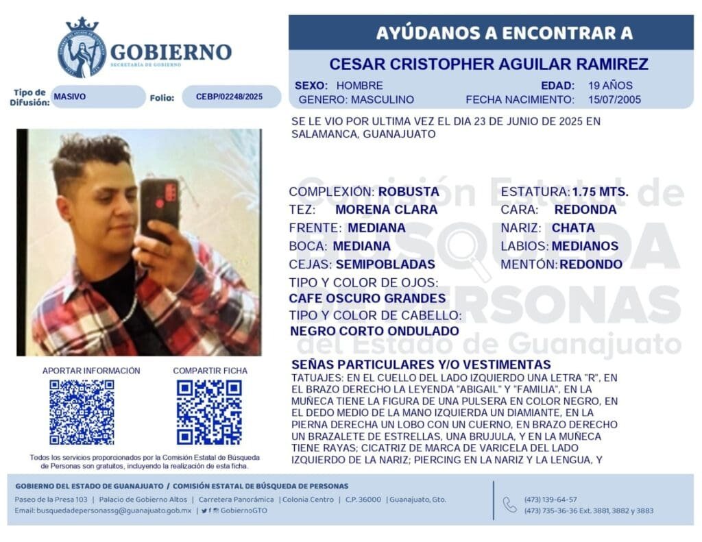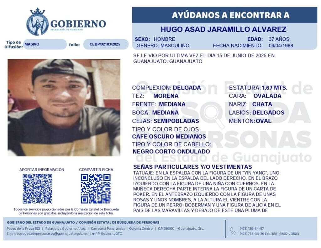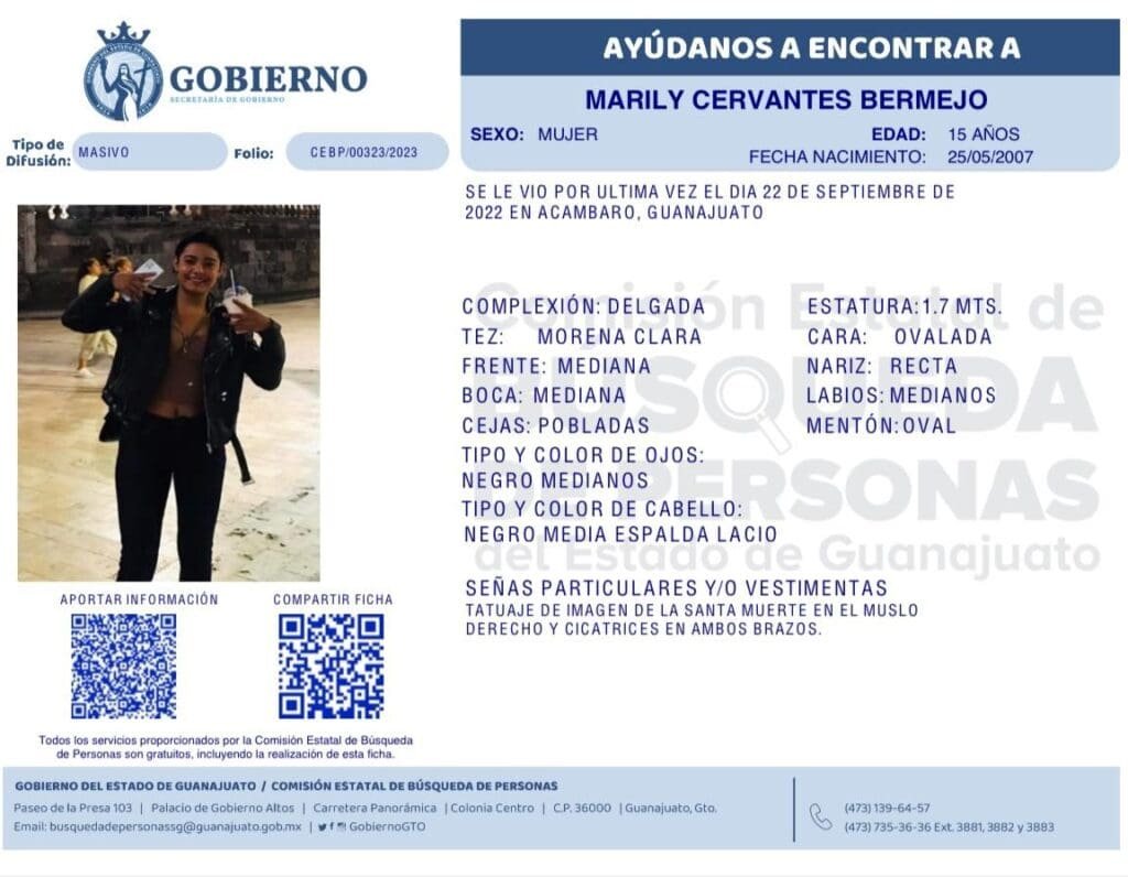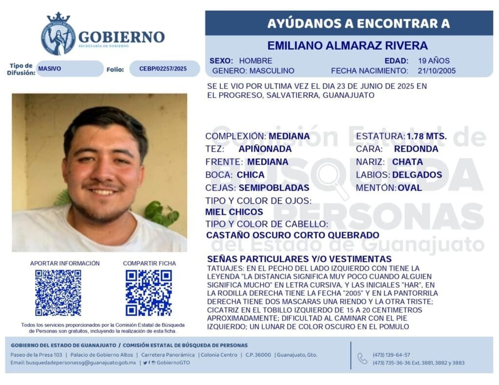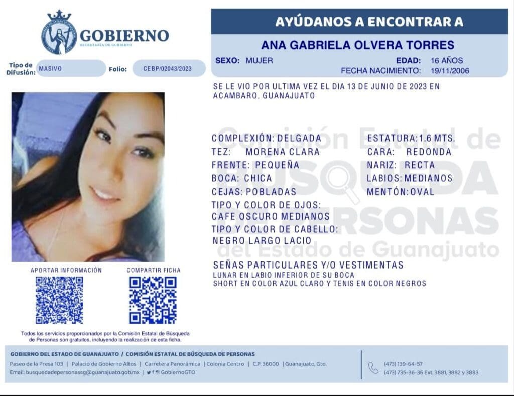 Si alguien tiene datos que ayuden a su localización, puede comunicarse con la Comisión Estatal de Búsqueda de Personas: