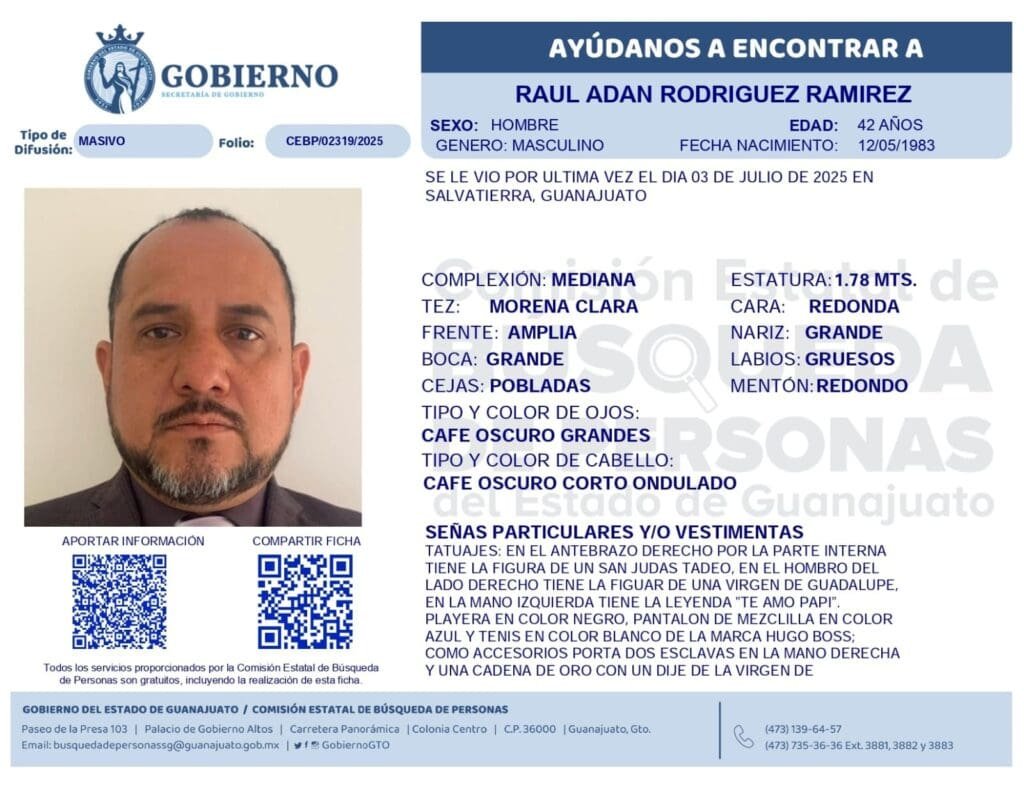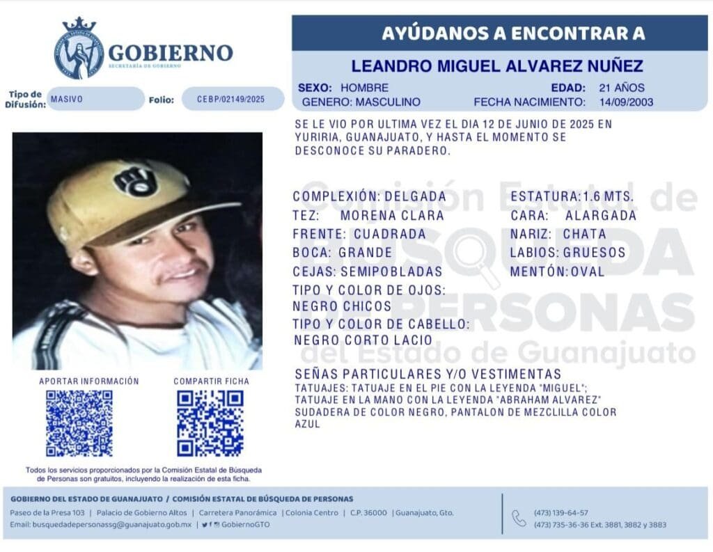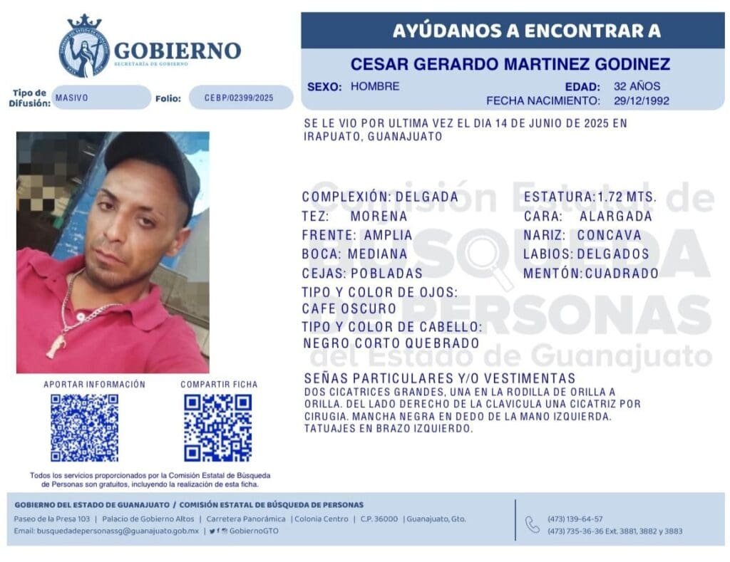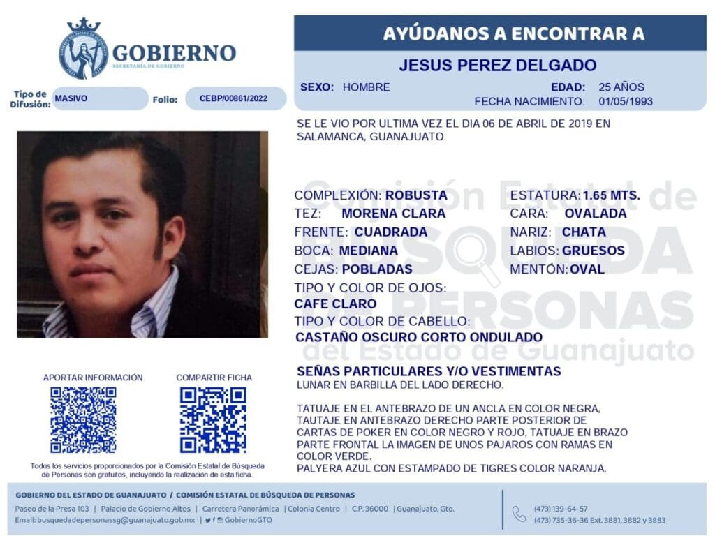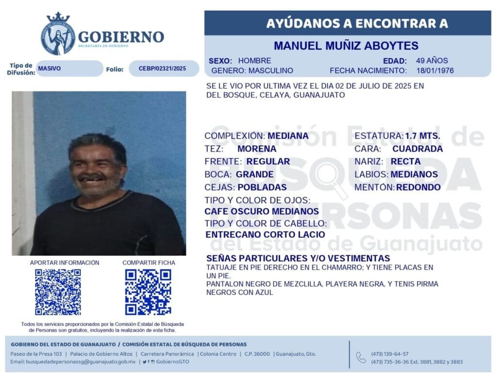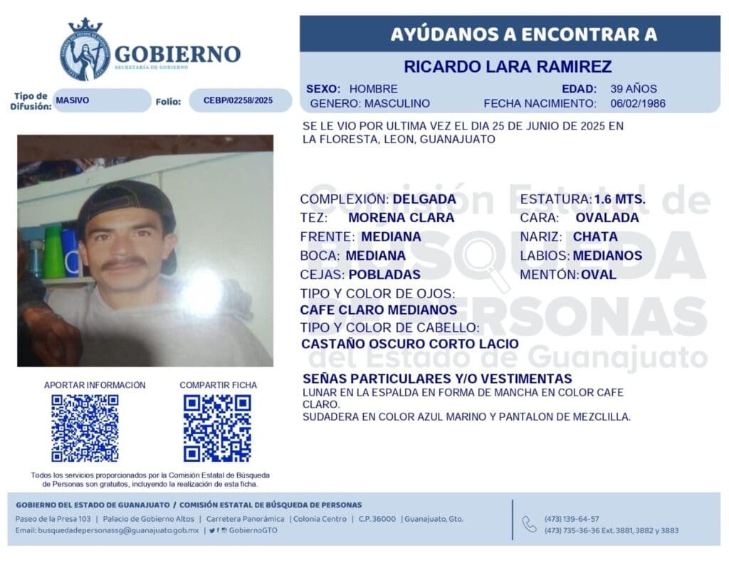 Si alguien tiene datos que ayuden a su localización, puede comunicarse con la Comisión Estatal de Búsqueda de Personas: