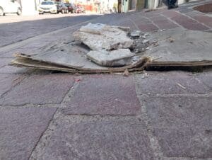 Frente al riesgoso panorama, habitantes decidieron colocar tabla sujetada por trozo de concreto; una medida improvisada que pretende, además de poner en alerta a los transeúntes, evitar algún percance. En esta misma área los medidores han presentado acumulación de basura en su interior.