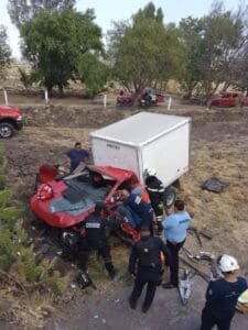 El percance ocurrió a la altura del kilómetro 83, donde automovilistas que transitaban por la zona alertaron a los cuerpos de emergencia. Al arribar al lugar, elementos de Protección Civil, Bomberos y Seguridad Pública localizaron fuera de la cinta asfáltica una camioneta y un vehículo compacto, ambos con daños considerables.