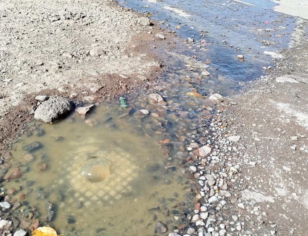 Esta comunidad, forma parte de cinco que se ven afectadas por el incumplimiento de parte de una empresa contratada para los trabajos en la administración municipal 2015-2018, aunque dejó inconclusas obras de drenaje y la planta de tratamiento.