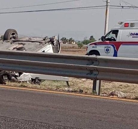 Pénjamo, Gto. – Minutos antes de las 5 de la tarde de este sábado se registró un fuerte accidente en la carretera Pénjamo – Abasolo, a la altura del kilómetro 41, donde un vehículo sufrió una volcadura.